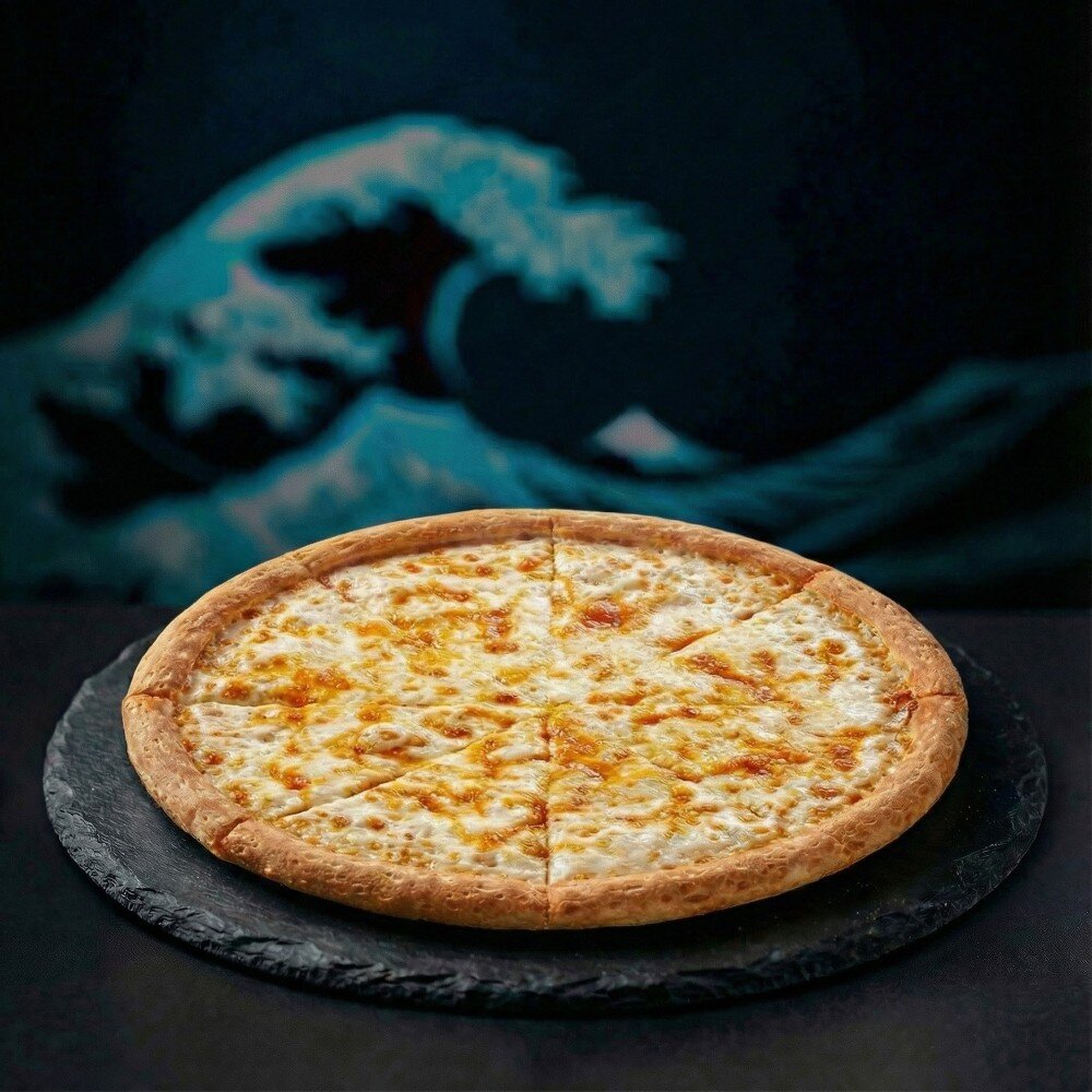 Сыр моцарелла, сыр чеддер,сыр памезан, сыр гауда, белый фирменный соус.