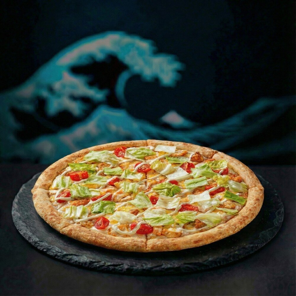 Куриное филе, помидоры черри, салат айсберг,сыр пармезан, белый фирменный соус.